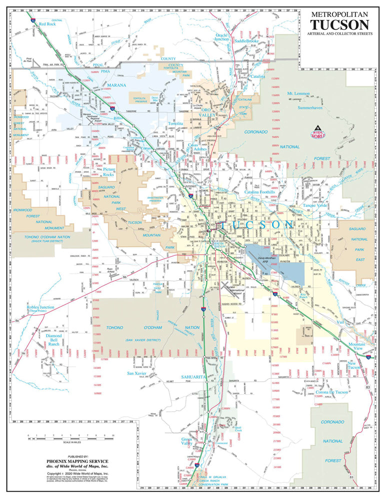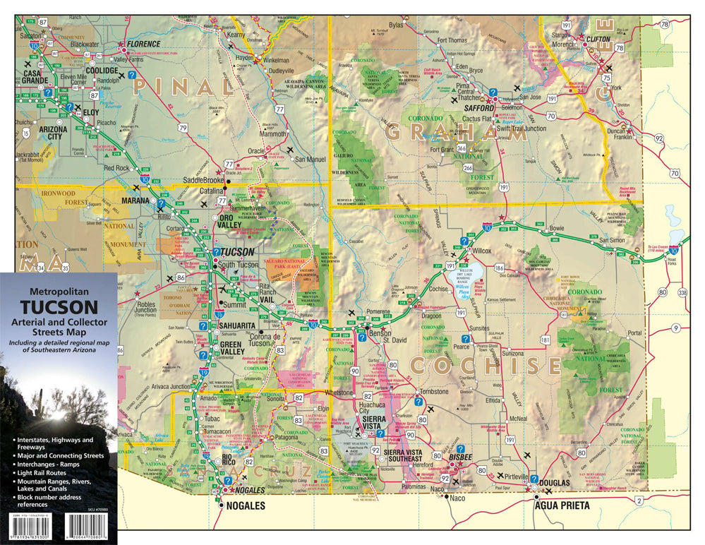 Gloss Laminated Metropolitan Tucson Arterial and Collector Streets Map Including a Detailed Regional Map of Southeastern Arizona [Map] Wide World Maps & MORE! and Phoenix Mapping Service
