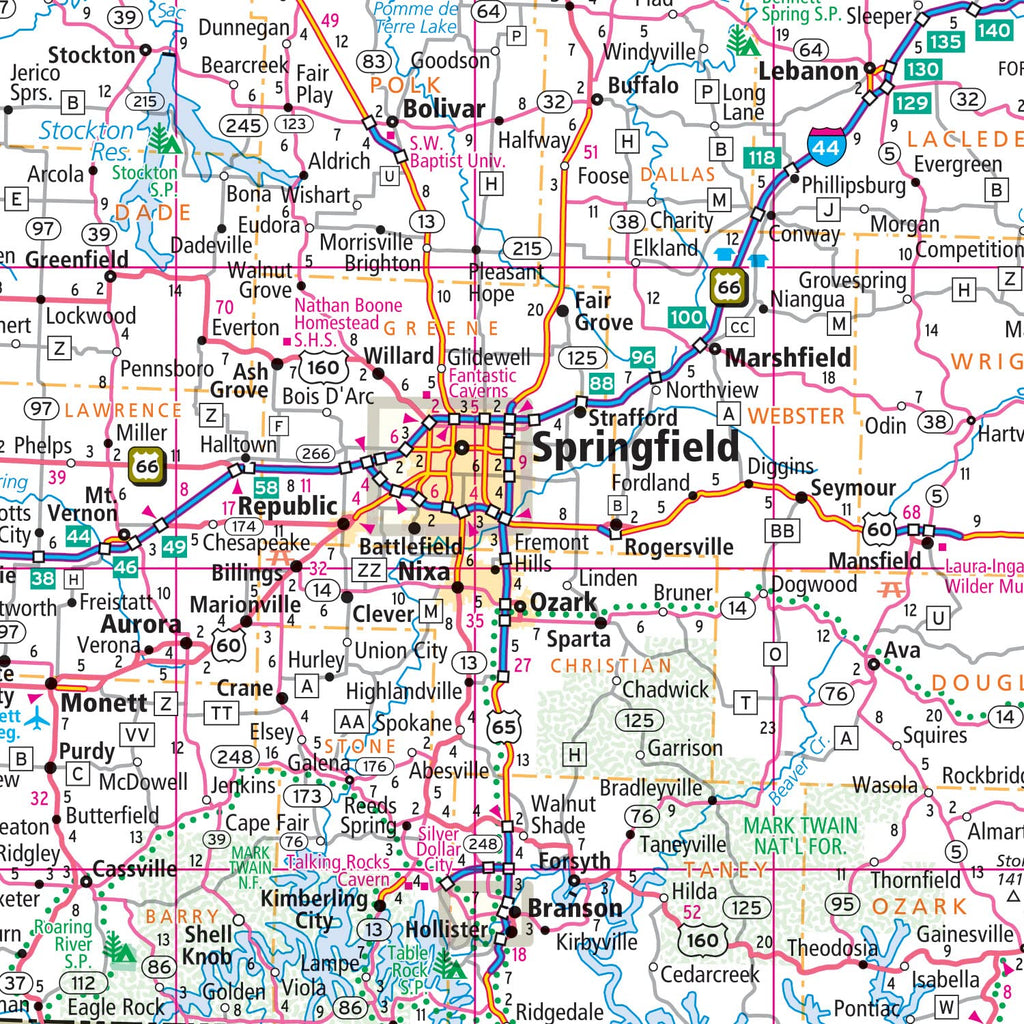 - Clearly indicated highways, county boundaries, points of interest, and m!ore.