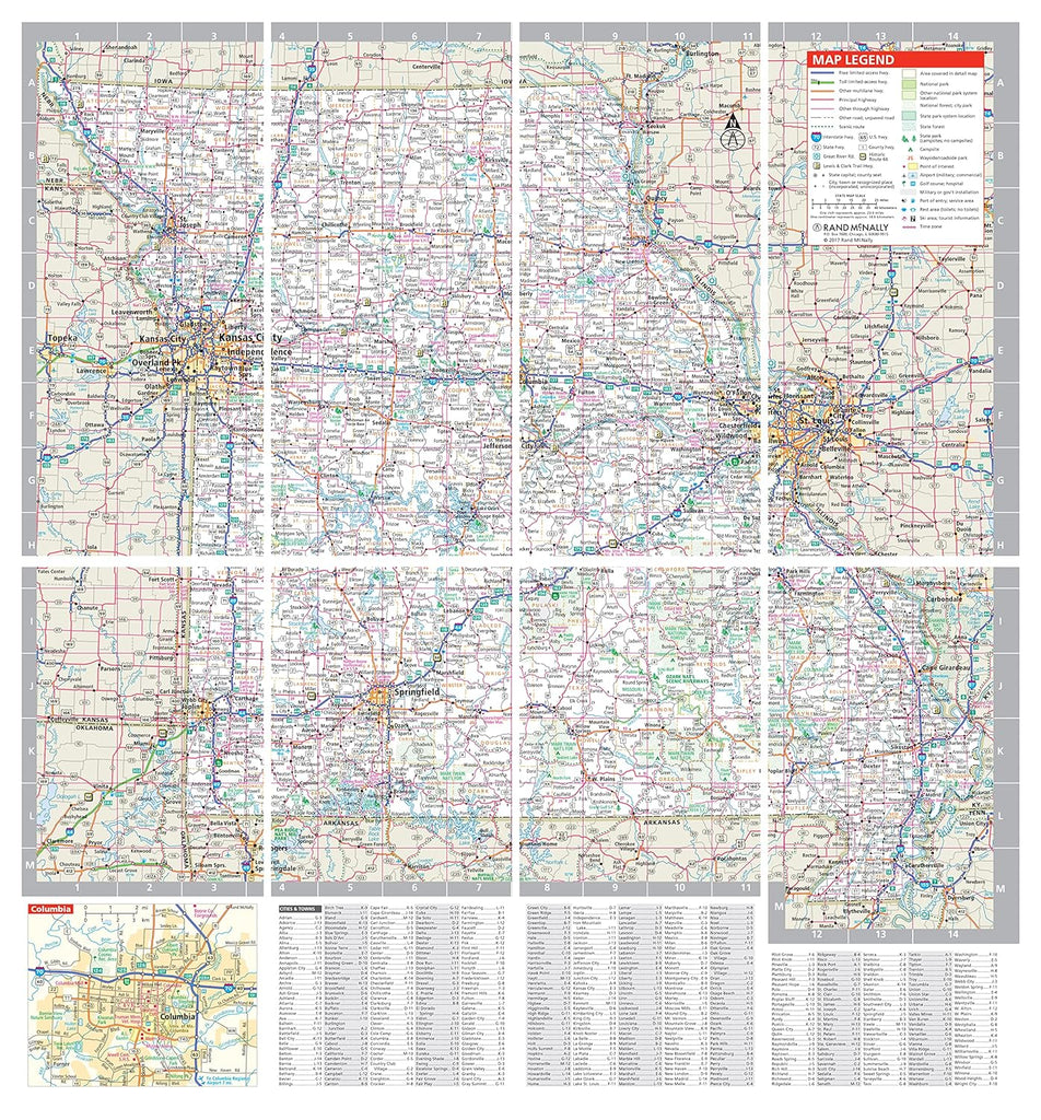 - Quick-reference legend and city index.