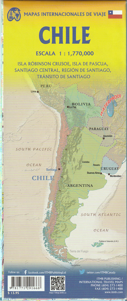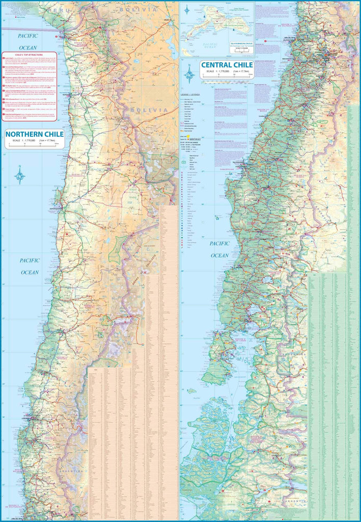 Chile is an interesting country to visit. We have explored the central portion and I'd love to drive the Austral, the roadway pushed through the southern Andes several years ago. This, to me, creates the essence of off-the-beaten-path travel. This fourth edition improves font size and moves the large inset maps around the map. As was the case previously, it is printed on durable waterproof paper. Please note that the ISBN suffix has changed; we have run out of available numbers for the previous one.