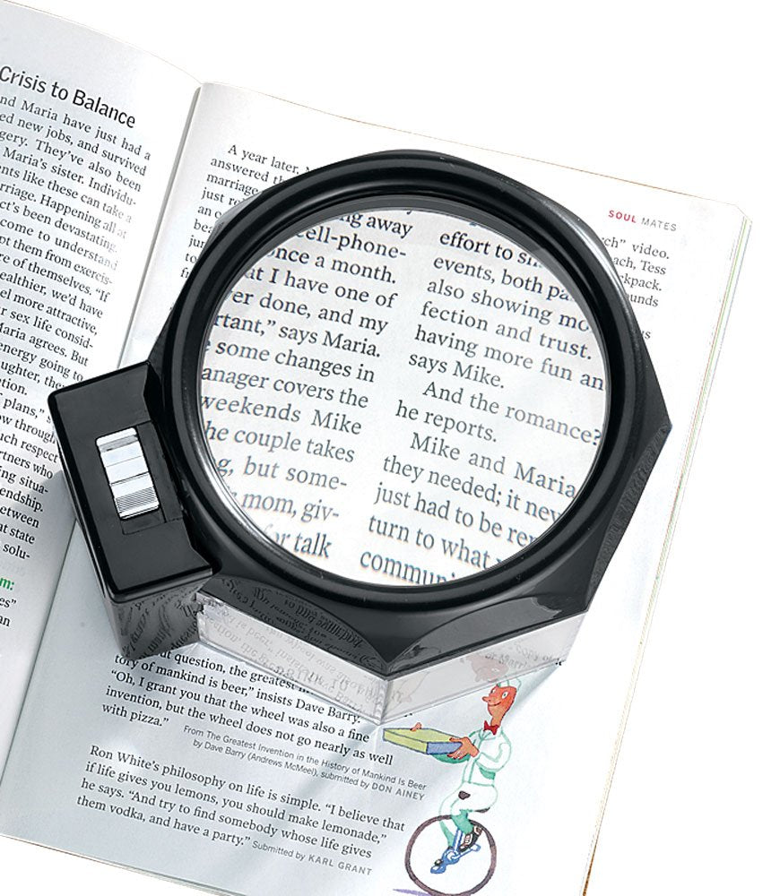 Illuminated Magnifier is ideal for crafts and hobbies. It magnifies & lights fine details bringing them into focus. This is excellent for maps, newspapers, stamps, coins, and MORE!