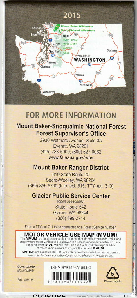 • Description: Mount Baker-Snoqualmie National Forest - Mount Baker Wilderness, Mount Baker National Recreation Area, and Noisy-Diobsud Wilderness, Washington State
